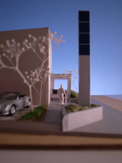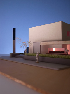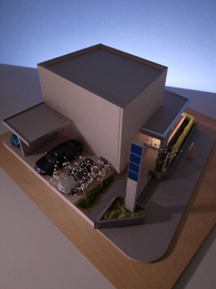 交通量の多い交差点に面する敷地に建つ内科診療所の計画。かなり目立つ立地であるので、街の小さなランドマークとなるような親しみのもてる建物とし、かつ入りやすい雰囲気をもった診療所となるように計画した。少人数の医師、看護師での作業がスムーズに行える動線計画を十分検討している。