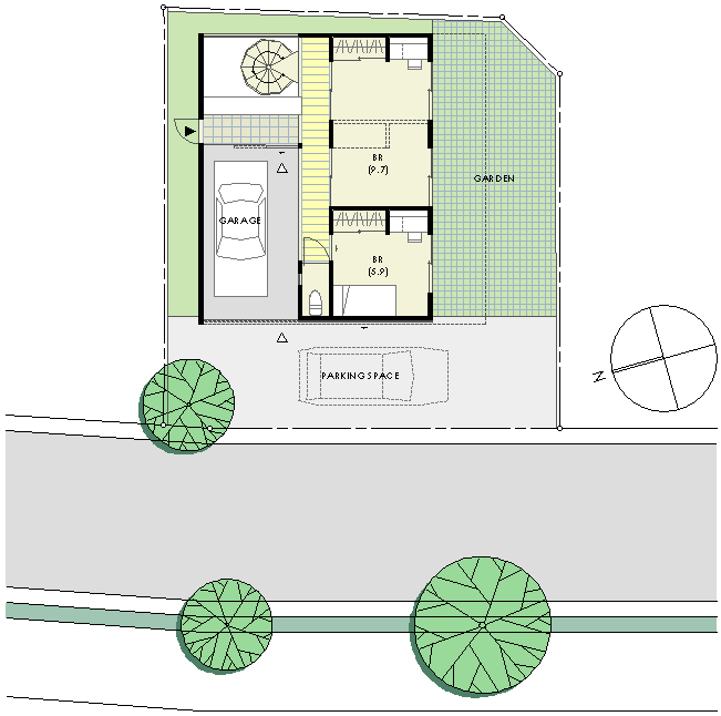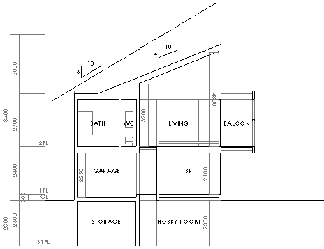 | 計画地 :神奈川県横浜市都筑区 | 新興住宅地における、良好な環境にあり整形なかたちのきれいな敷地。地下に趣味の部屋をもつ2階リビングの住宅である。 自動車を大小取り合わせて4台保有しているのでそのためのスペースを確保した上で、周辺に対するプライバシーに配慮した どちらかというと閉鎖的な住居を求められた。地下に光を落とすための仕掛けと、2階のメインの居住部のプライバシーを確保する 広いテラス、3層吹き抜けに螺旋階段のシルエットが浮かび上がるエントランス、防犯もかねる玄関の大きな木製格子戸など随所に 非日常的な空間を設けた楽しい住宅となっている。 |