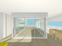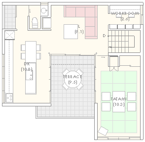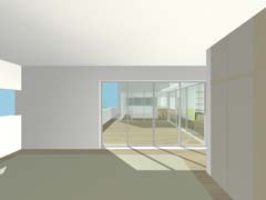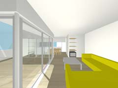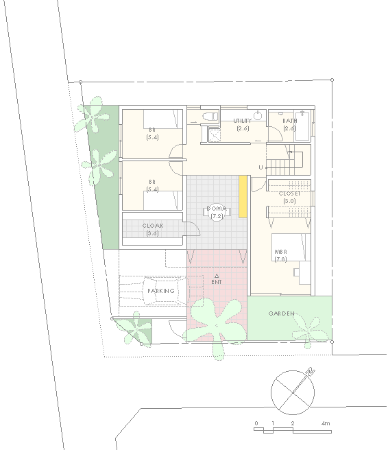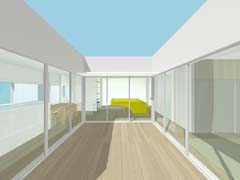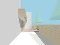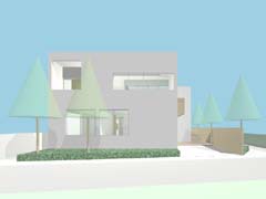 | 計画地 :東京都杉並区 | 接道条件には大変恵まれているが、その分プライバシーの確保が求められる敷地である。1階では玄関となる土間、2階では屋上テラスを中心に配置して、日照とプライバシーのバランスを計りながら、1階にプライベート空間、2階にパブリックな空間を明確に分離してレイアウトしている。3方を外部に対してほぼ閉じているけれども、唯一開いた一方には既存の大切な樹木を移植して象徴的に扱っている。2階ではテラスを中心とした巨大なワンルーム空間にほぼ等しい視野を得ることができる。 |